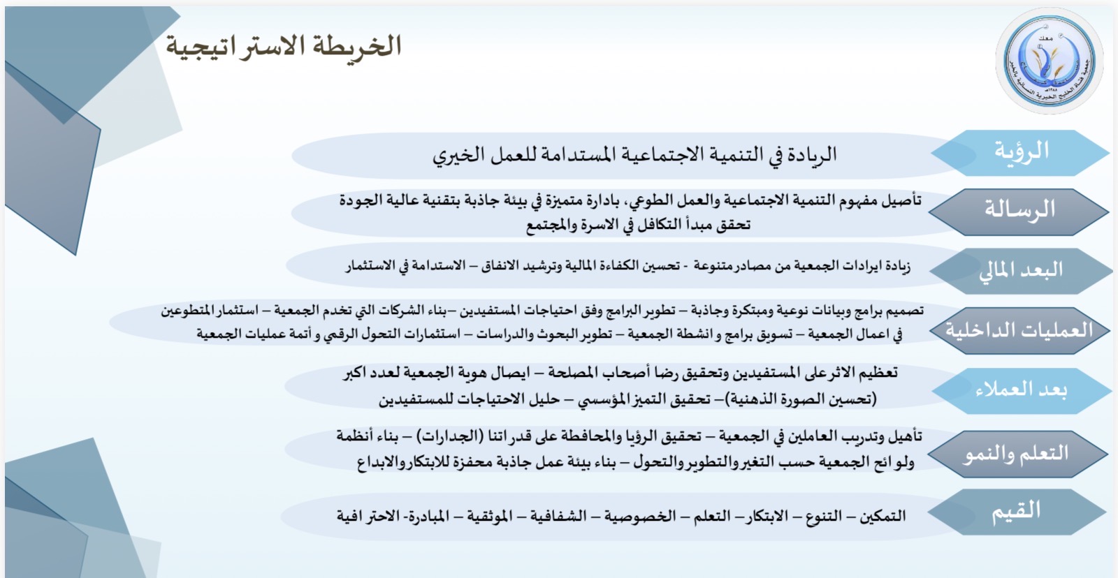 ومع توالي التحديات، توسّعت جهود الفتيات لتشمل برامج ومشاريع خيرية ومجتمعية متنوعة، شارك فيها متطوعون من مختلف الأعمار. وبعد نحو خمسة عقود من العمل، أصبحت الجمعية رائدة في التنمية المجتمعية من خلال خدمات تشمل الطفولة المبكرة، تعليم ذوي الاحتياجات الخاصة، دعم الأسر المنتجة، والبرامج الاجتماعية والصحية والتعليمية، مع التزام بالجودة والبحث الاجتماعي والتأهيل المستمر.